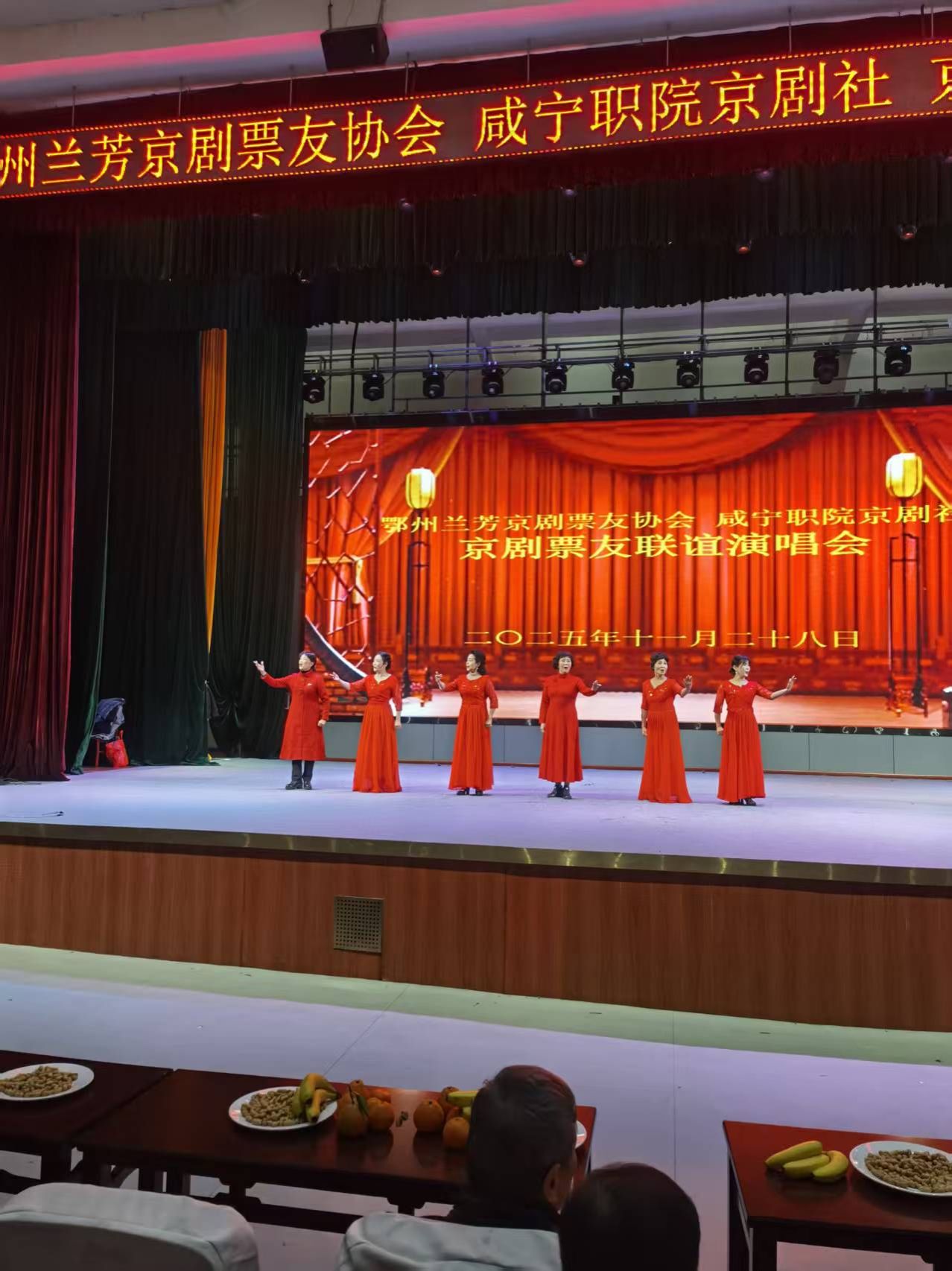 这是咸宁职院京剧社第一次与鄂州京剧票友协会开展联谊活动。鄂州是湖北省京剧二团的所在地,京剧基础扎实,力量雄厚,艺术精湛,素有“戏码头”之称。本次活动鄂州兰芳京剧票友协会演出16个节目,咸宁职院演出24个节目。通过联谊活动,增进了双方的友谊。